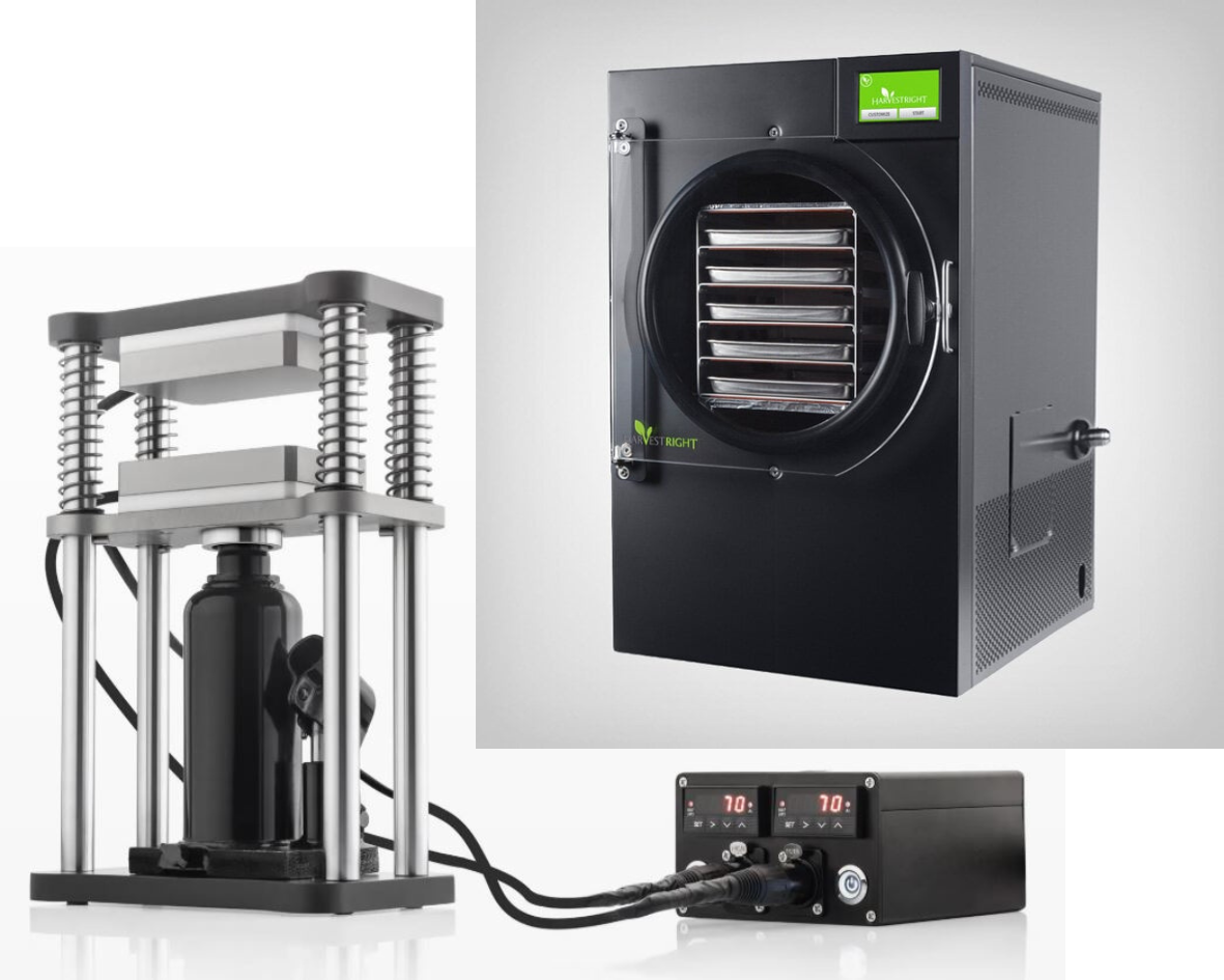 Für die finale Veredelung nutzen wir unseren Harvest Right Gefriertrockner und unsere Rosin Presse.